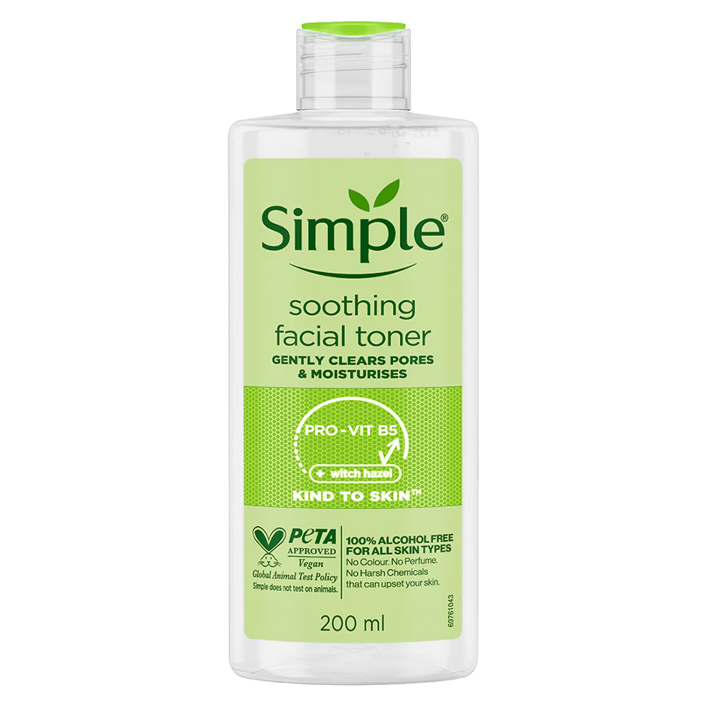 تونر سیمپل از لاین Kind To Skin مناسب انواع پوست بوده و دارای حجم ۲۰۰ میلی لیتر است.استفاده از این محصول می تواند علاوه بر کمکی که به تنظیم PH پوست شما می کند، می تواند موجب آبرسانی پوست شود و به تسکین پوست شما نیز کمک نماید. تونر سیمپل مدل kind to skin یک محصول عالی برای کمک به سلامت پوست و پاکسازی آن می باشد که به دلیل عدم استفاده از ترکیبات شیمیایی مختلف مانند الکل و پارابن، برای پوست های حساس نیز مناسب می باشد.